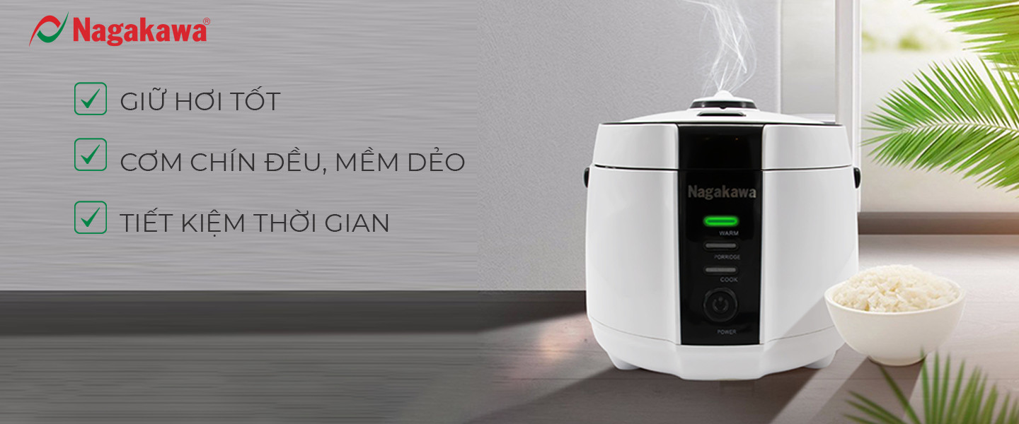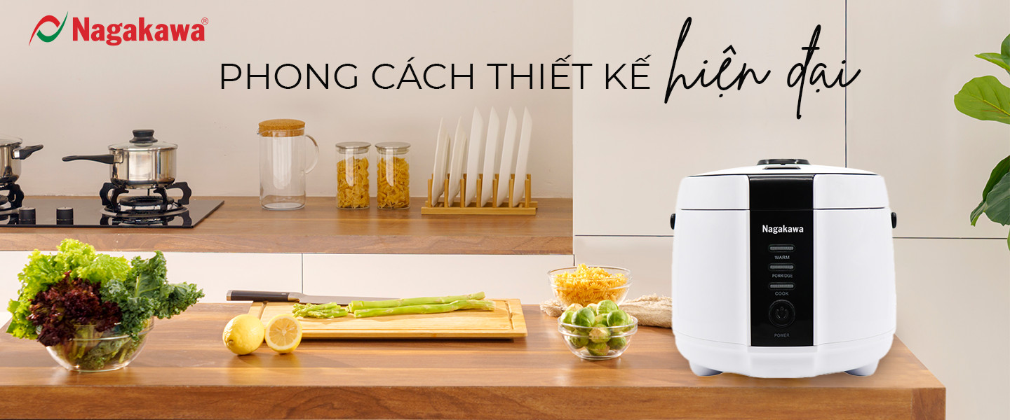 Nồi cơm điện tử Nagakawa NAG0131 với thiết kế gọn đẹp sang trọng cùng màu sắc trắng đen nhã nhặn mang đến điểm nhấn cho căn bếp nhà bạn.