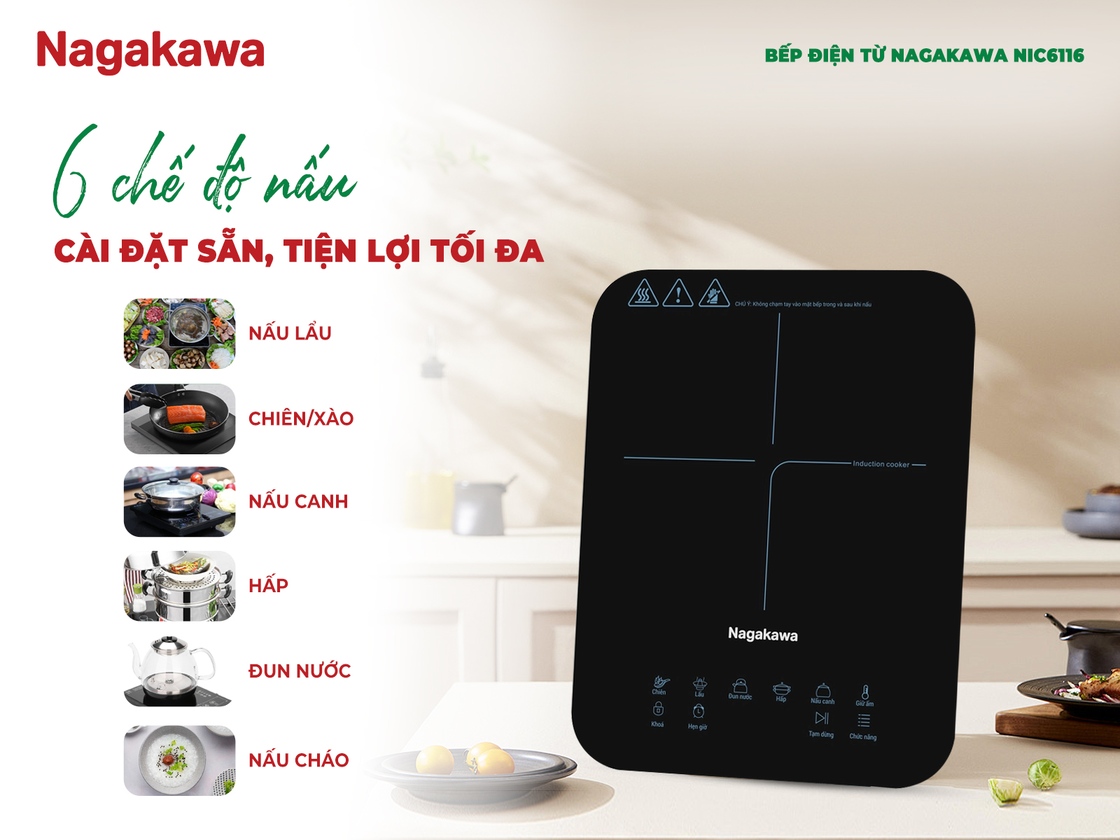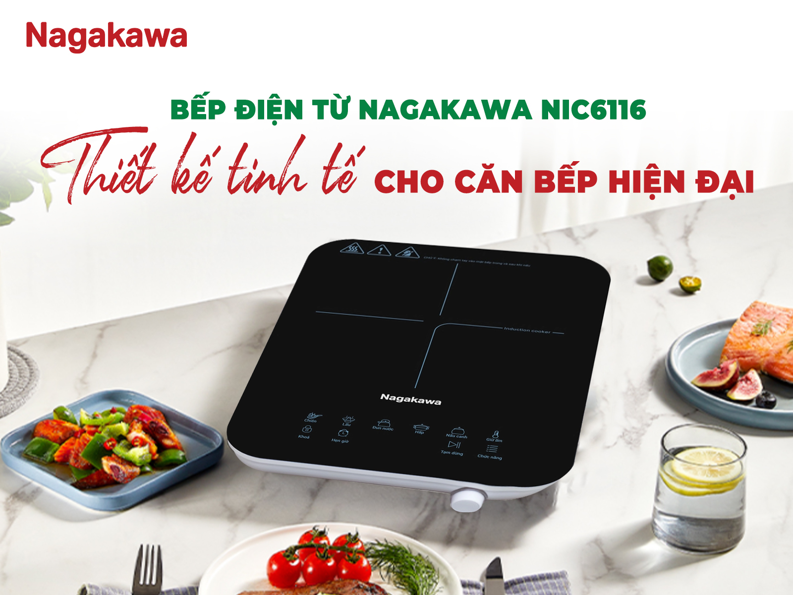 Bếp điện từ Nagakawa NIC6116 Thiết kế hiện đại, tinh tế, phù hợp với không gian bếp hiện đại