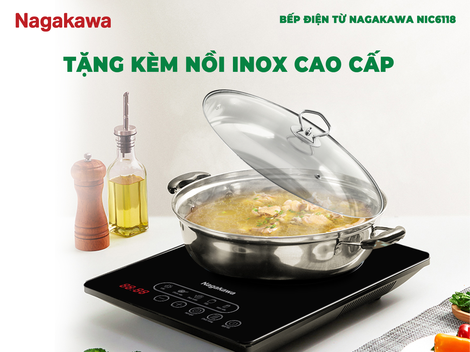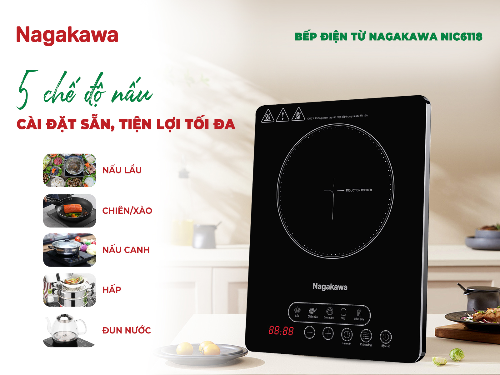 Bếp điện từ Nagakawa NIC6118 - Trợ thủ đắc lực cho bữa ăn gia đình thêm hoàn hảo