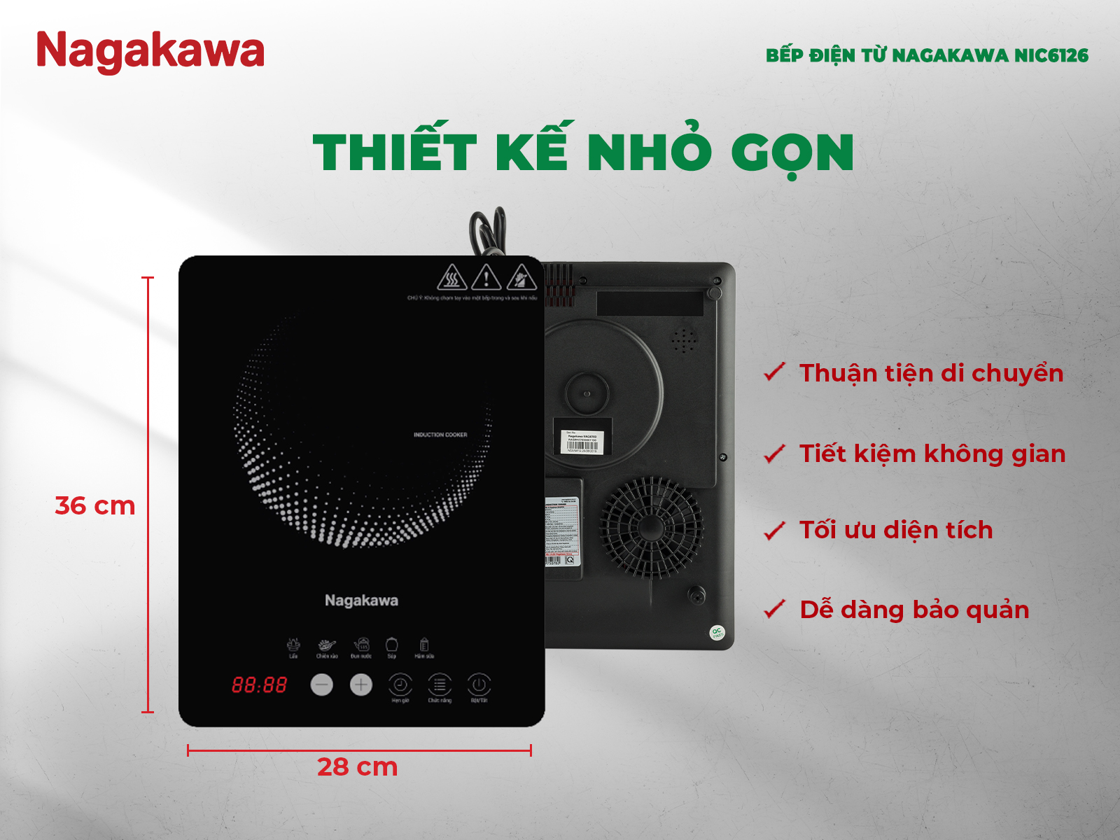 Với thiết kế siêu mỏng nhẹ, Nagakawa NIC6126 giúp tiết kiệm không gian bếp, dễ dàng lắp đặt và di chuyển. Bạn có thể lựa chọn lắp đặt âm hoặc dương tùy theo thiết kế của không gian bếp.