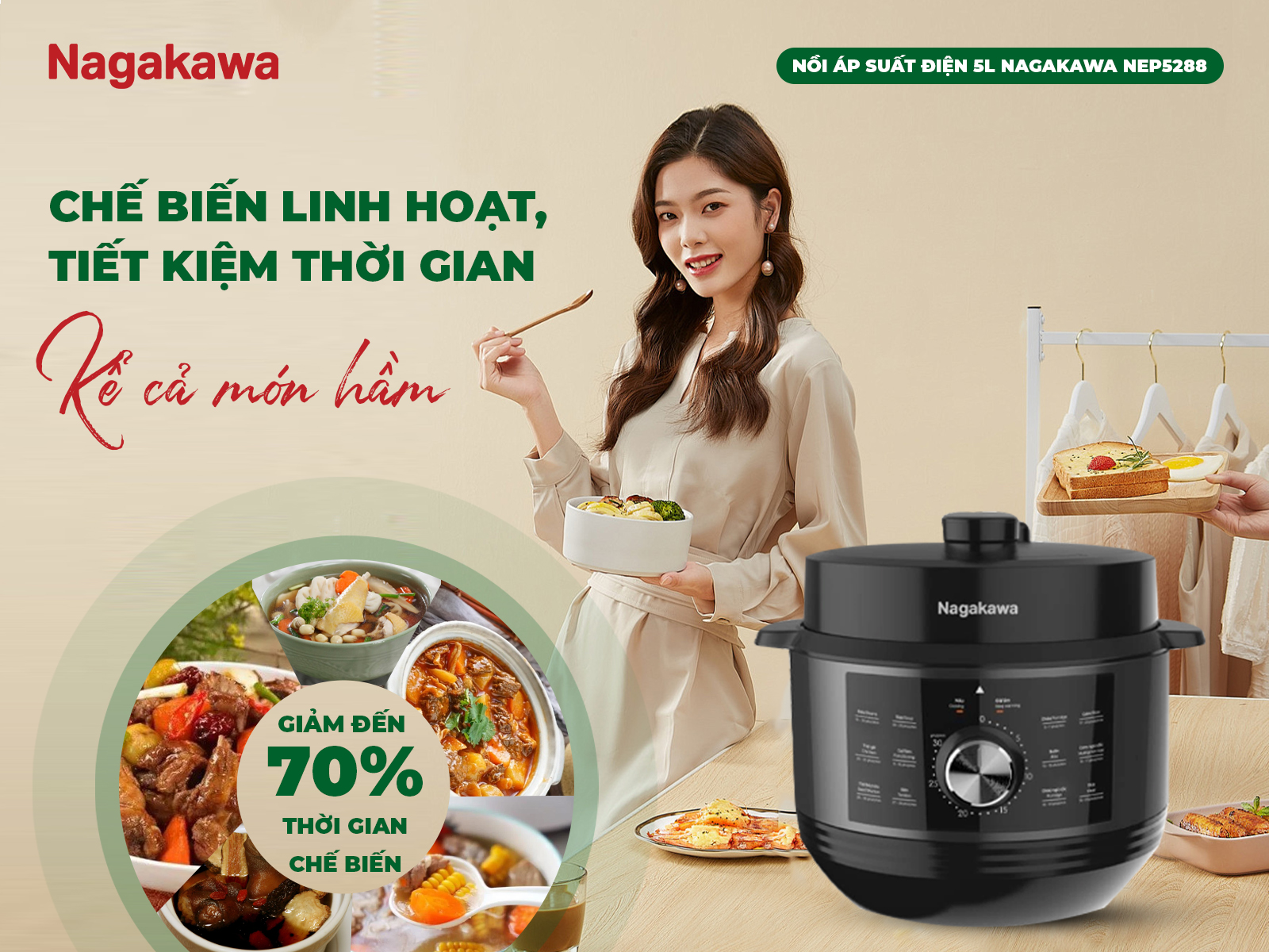 SẢN PHẨM Nồi áp suẩt điện 5 lít Nagakawa NEP5288