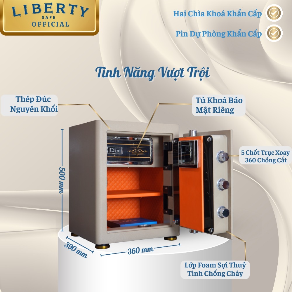 Két sắt Liberty LB50S (vân tay, điện tử, kết nối điện thoại, màu ni xám)